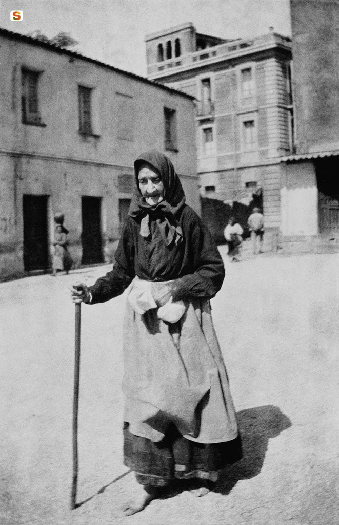 Anziana donna in Piazza Cavallotti.